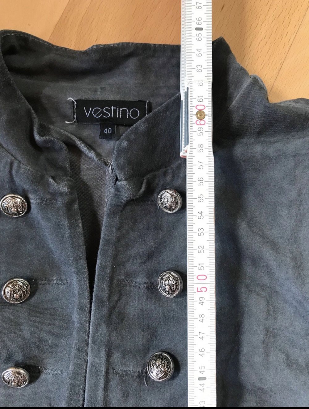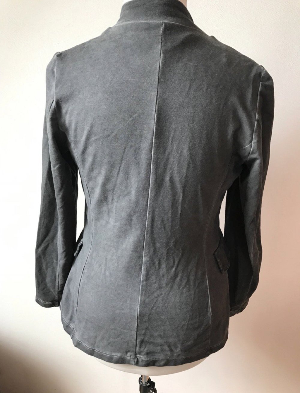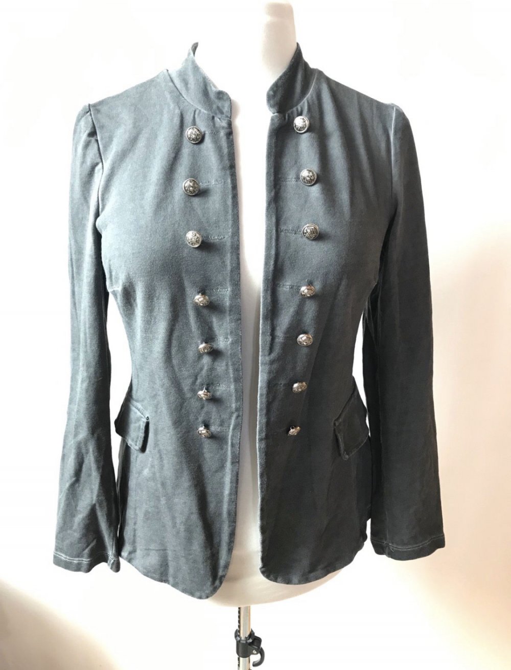 #blazer #jacke #jersey #elastan #maritim #military_style #open #sakko #grau #usedwashed #trendy #femme #large #40 #tailliert #uniformlook #grey #zierknopfleiste