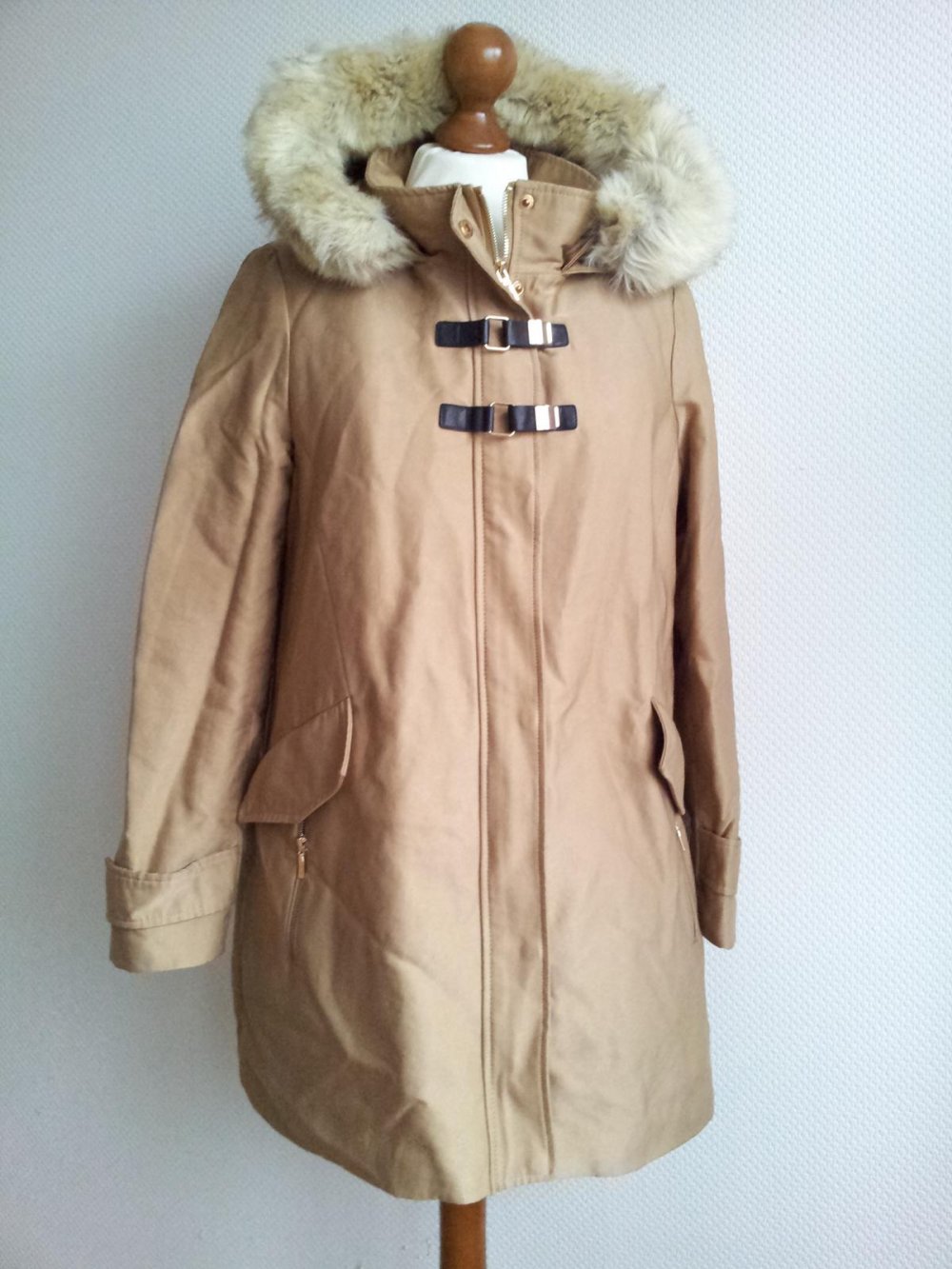 Mango Jacke Kurzmantel, L 40, Cognacbraun Beige, Duffle Teddyfell