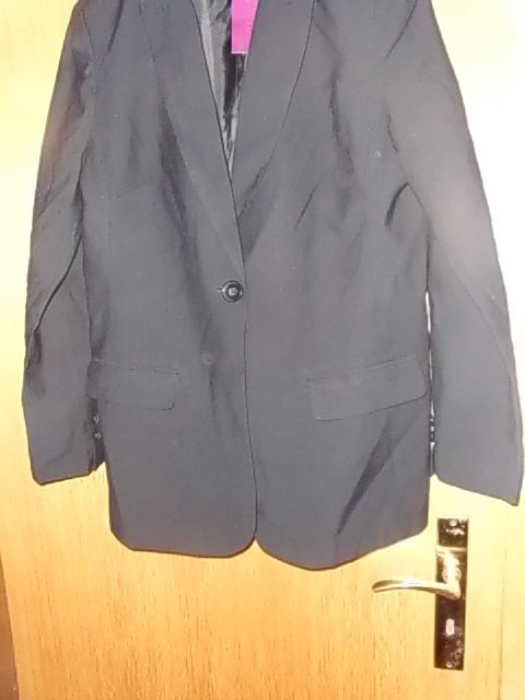 Biete hier einen Blazer ( Longblazer) von Lascana in Größe 42 an. Er ist schlicht schwarz, einige Fotos habe ich überbelichtet, damit man die Details besser erkennen kann. Der Blazer hat einen Reverskragen und wird vorn mit einem Knopf geschlossen. Außerdem befinden sich vorn zwei Taschen mit Patten. An den Ärmelenden befinden sich jeweils zwei kleine Knöpfe. Zwei Ersatzknöpfe befinden sich im Tütchen an dem Blazer. Ich hatte mir den Blazer letztes Jahr sicherheitshalber in zwei Größe bestellt, bei diesem habe ich die Umtauschfrist durch den Urlaub versäumt.