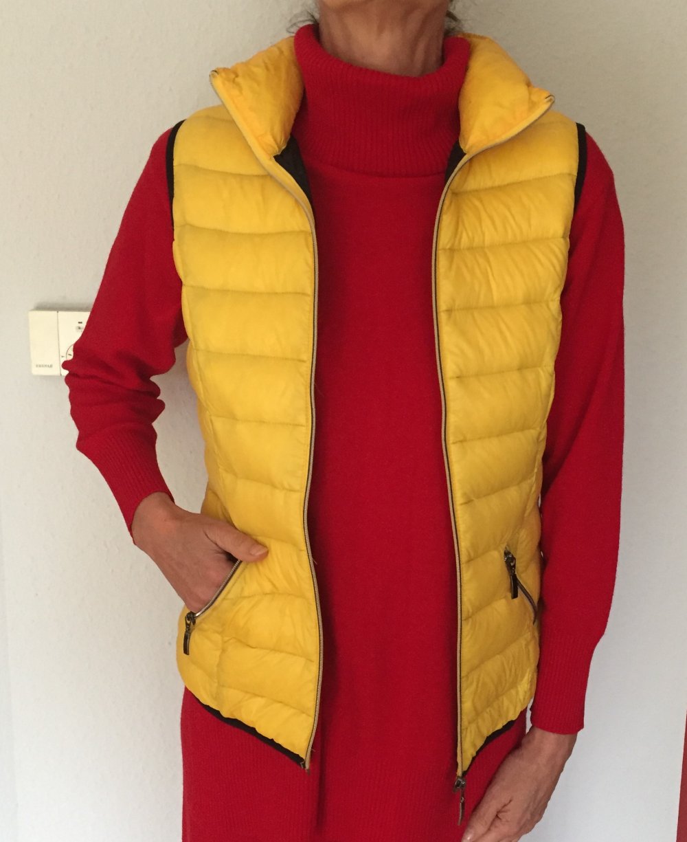 Nautic Daunenweste Gr.S in Gelb mit hohem Kragen + 12 Kammern, durchgehender Reißverschluss plus 2 Taschen