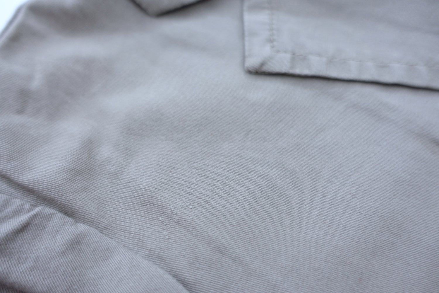 Lediglich an der rechten Schulter ist eine kleine Abrieb-/Pillingstelle erkennbar (siehe letztes Bild).