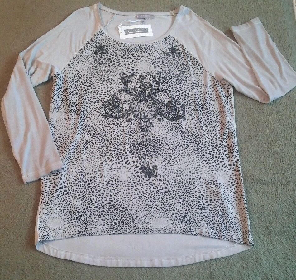 NEU Kapalua Damen Tunika Longshirt Gr.L Grau mit Leo Muster NP 69,95€
