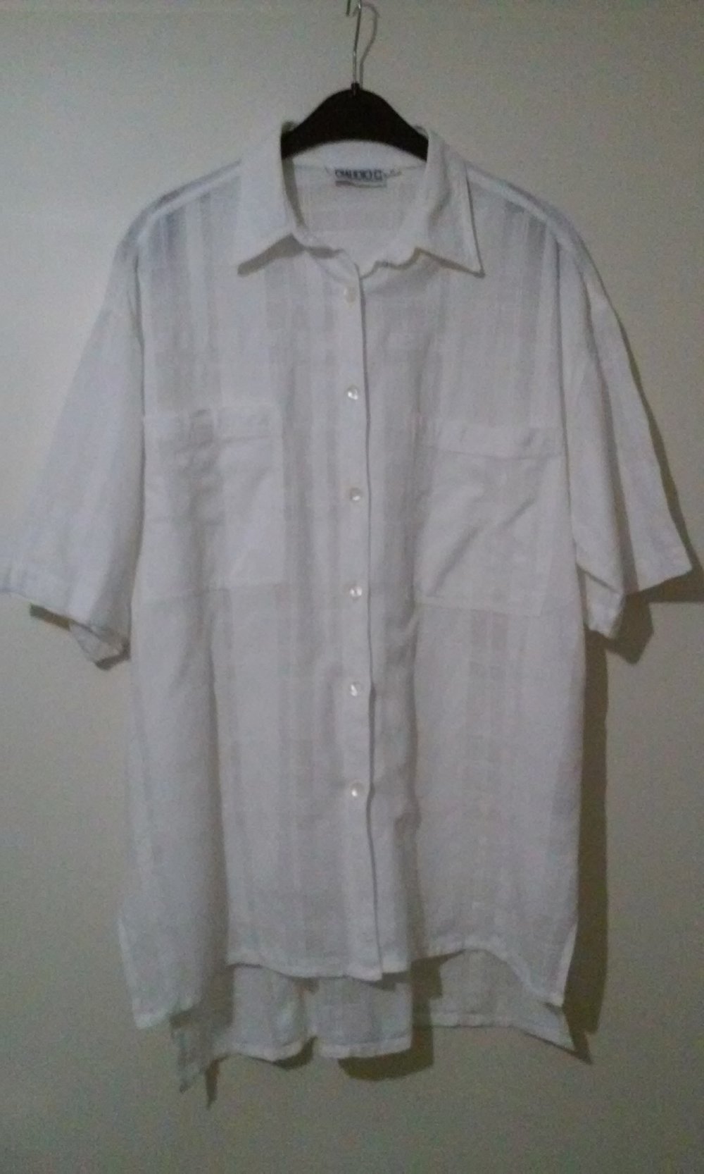 Wunderschöne weiße längere Bluse mit Gürtel Crashlook Gr. 40