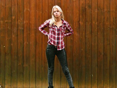 Cooles Karohemd in Rot und Weiß, tailliert geschnitten.