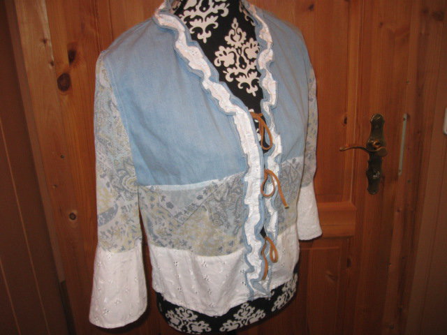 Biete eine Bluse, die nicht jede besitzt. Ob sportlich oder elegant, diese irre Bluse ist zu jedem Anlass Einsatz bereit. Sie besitzt keine Knöpfe, sondern Bänder zum verschließen, tolle Trompetenärmel und besteht aus einem wahnsinnigen Materialmix. Ausgeschrieben in der Gr. 42/44. Hier einige Maßangaben: