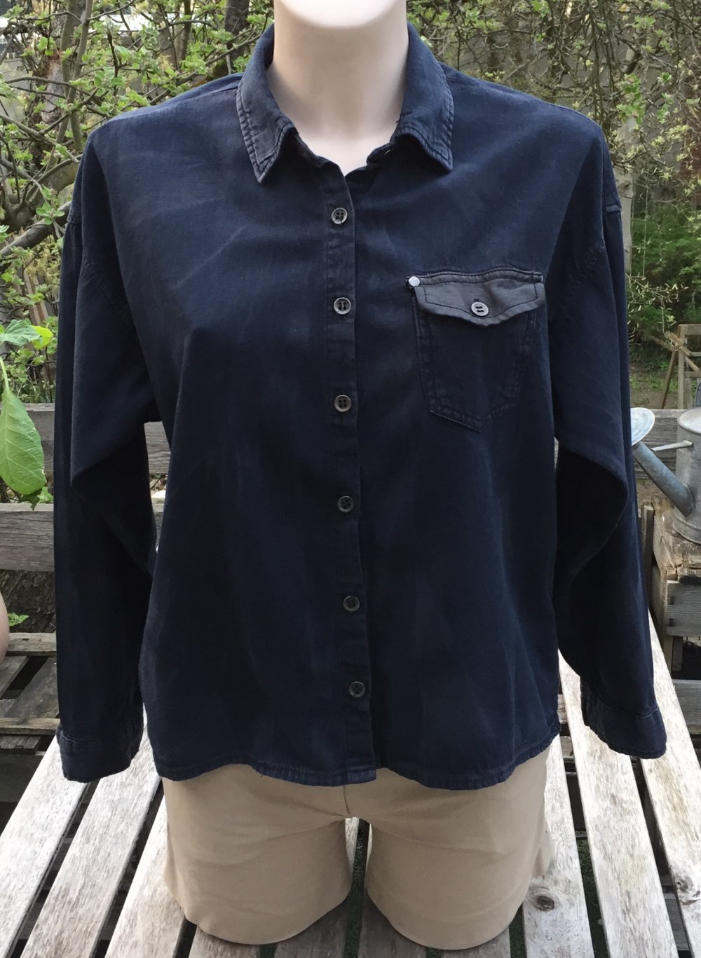 Schwarzes Jeanshemd mit leichter Vintage/Batik Optik in Größe 34.