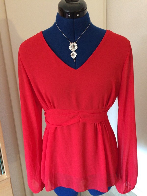 Schöne langärmlige rote Bluse mit V-Ausschnitt in Größe S.