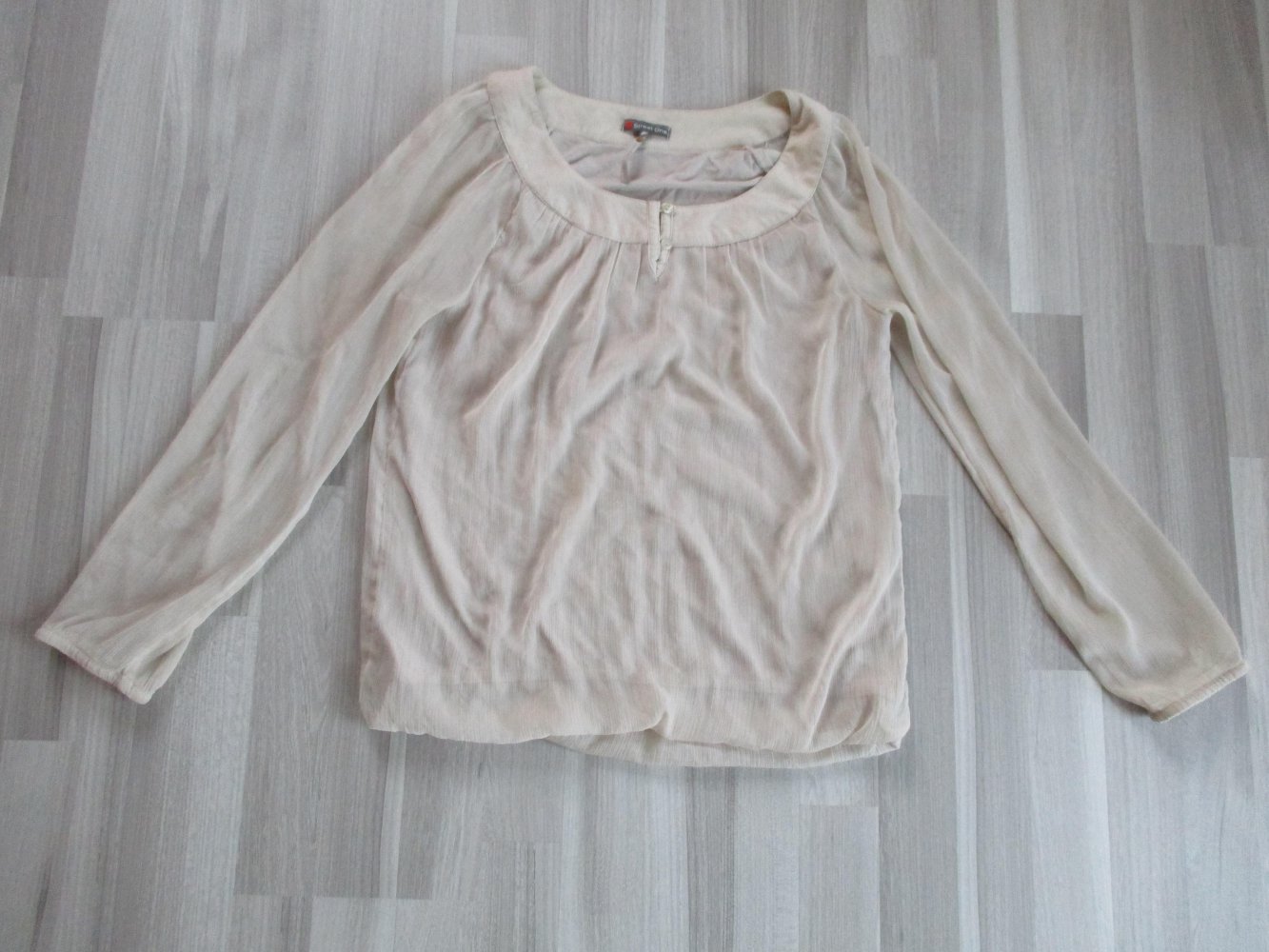 - Langärmlige beigefarbene Bluse von Street One - Größe 38 - An den Ärmeln ist die Bluse durchsichtig. Ich hab sie oft getragen. Ein paar Fäden lösen sich (siehe Fotos), ansonsten sind keine Mängel vorhanden