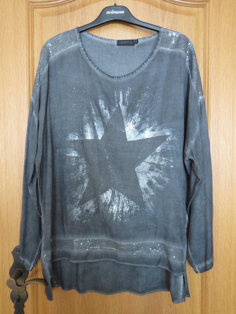 Bluse mit Rückenausschnitt grau Spitze Häkel