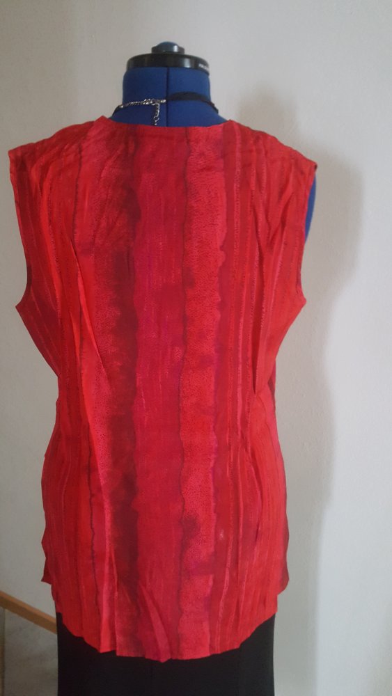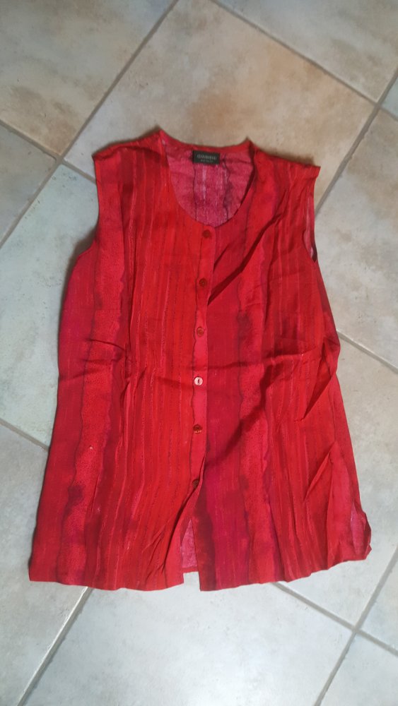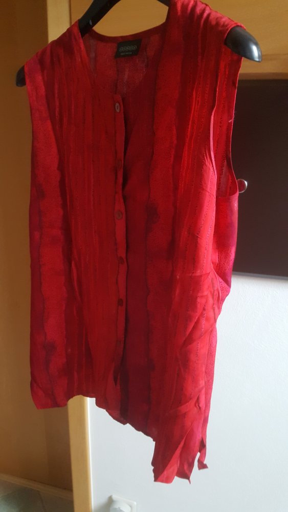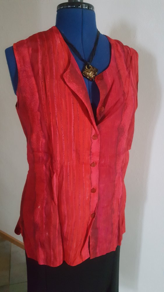 Bluse Hemdbluse Animalprint Streifenmix Längsstreifen 44 Ärmellos Westenlook rot Farbverlauf Figurschmeichler