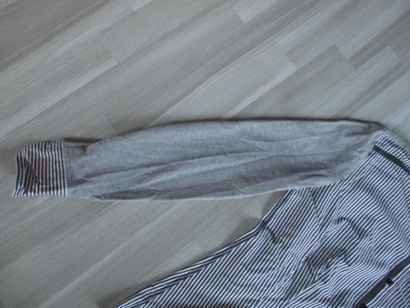 TCM Tunika Bluse mit Biesen Gr.38 weiß / hellgrau gestreift