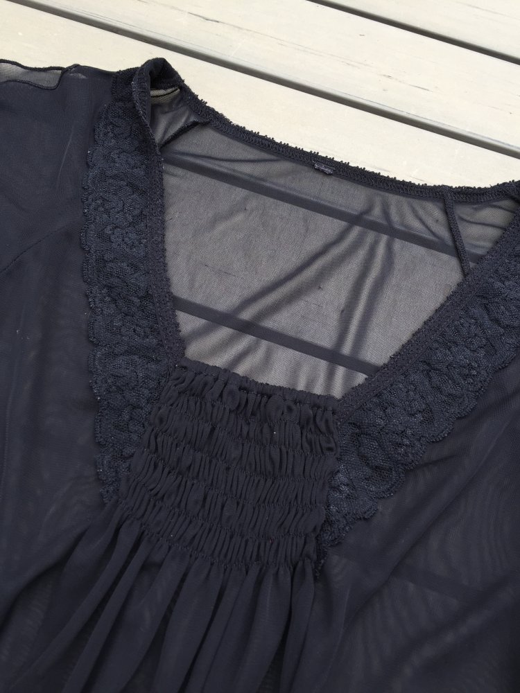Transparentes Blusenshirt mit gesmokter Brustpartie und kleinen Flügelärmeln.