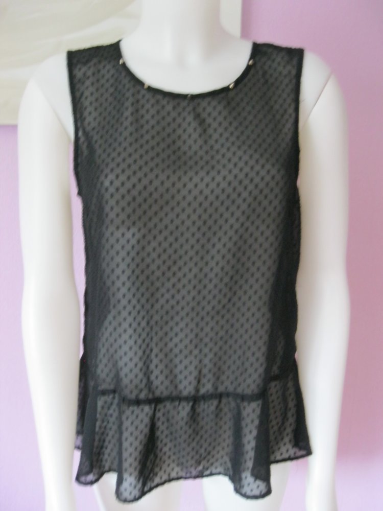 Schößchen-Top / ärmellose Bluse # H&M # Nieten # Schwarz # 38