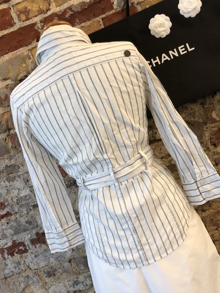 Diesel taillierte Bluse mit Gürtel Logoplakette Gr. S (passt XS 34 bis max S 36)