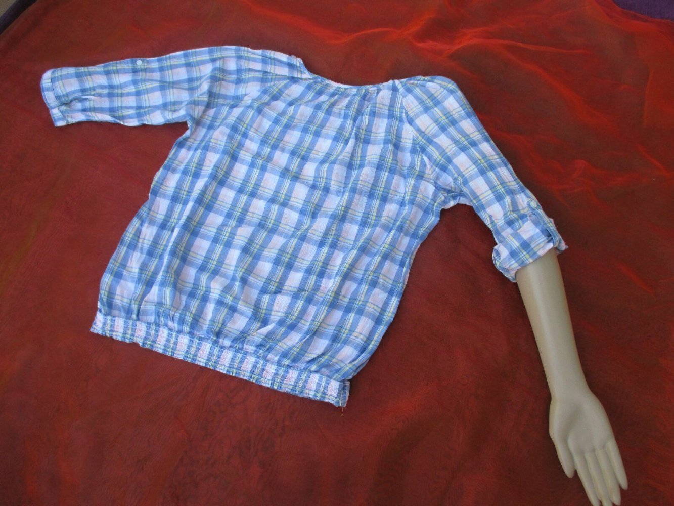 Am unteren Rand, ein praktischer Gummizug rundum, um sie, zu regulieren.