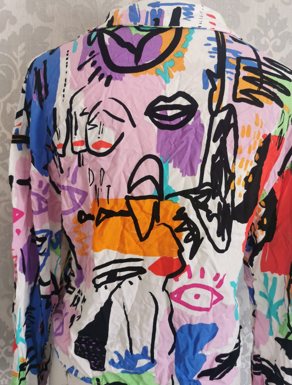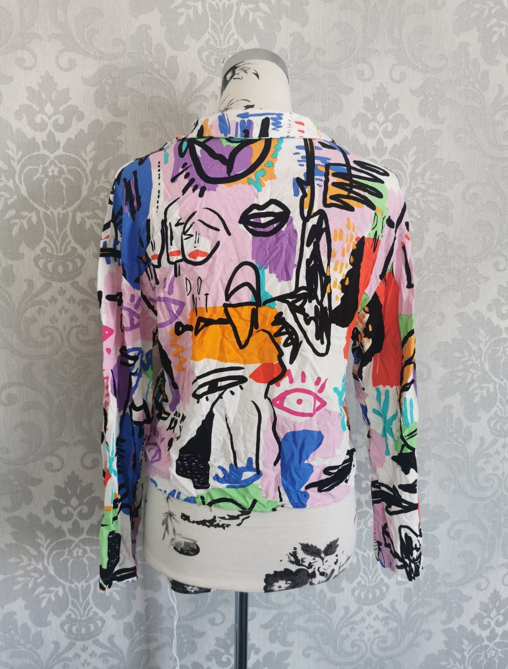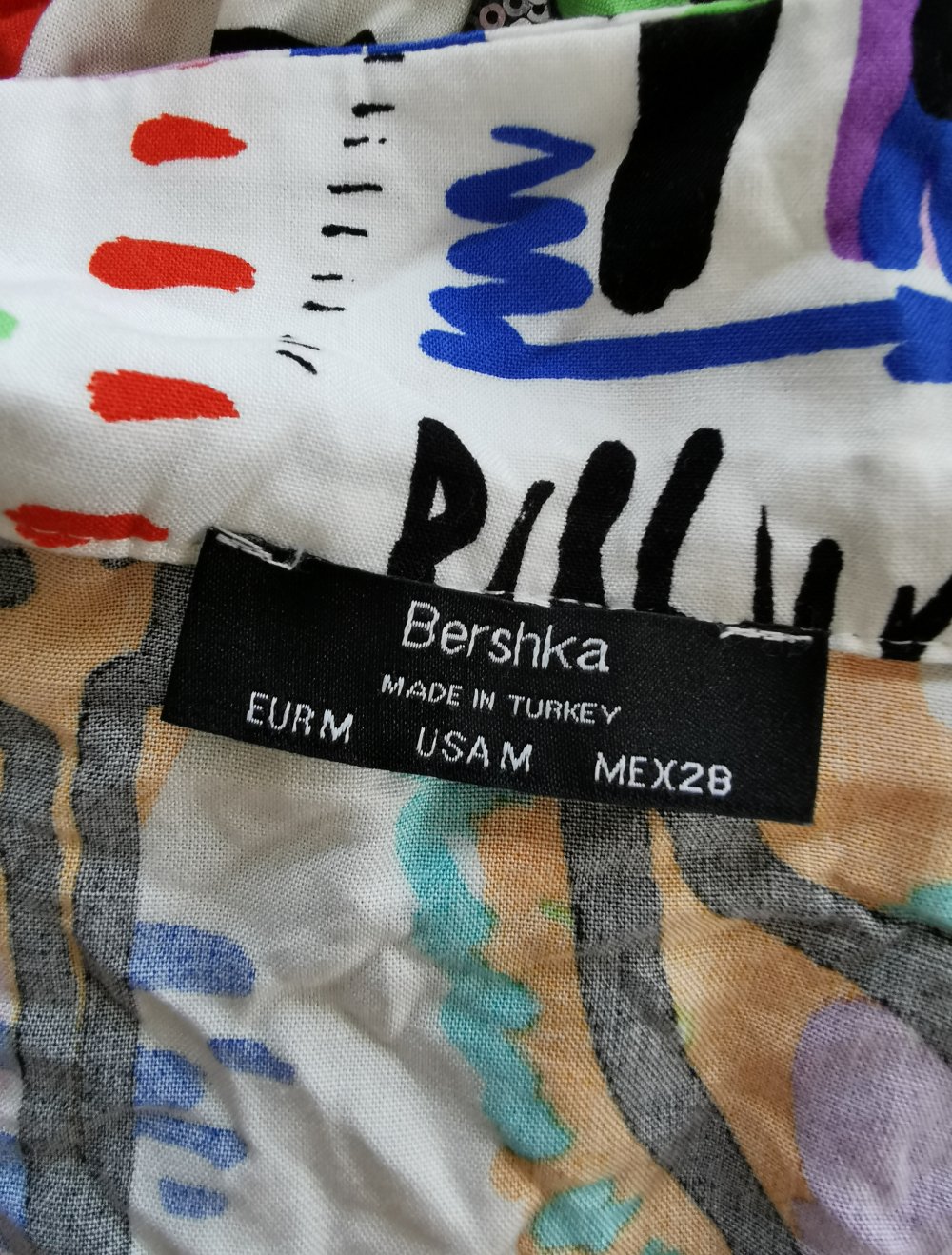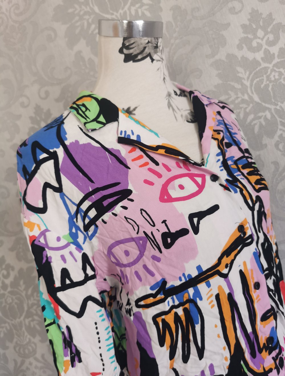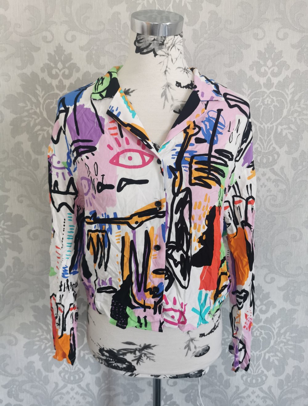 Bershka Bluse Gr. 38 bunt mit tollem rundum Print 100%Viskose Top Zustand