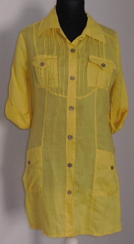 Longbluse, Leinenbluse, Gelb, Gr. L, Made in Italy