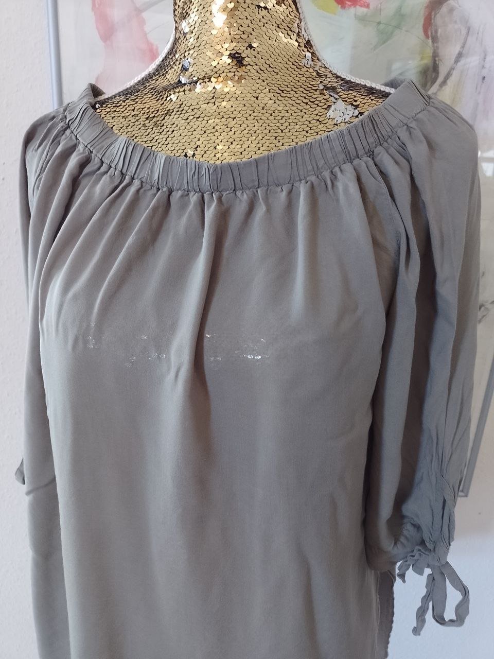 Bluse mit Rückenausschnitt grau Spitze Häkel