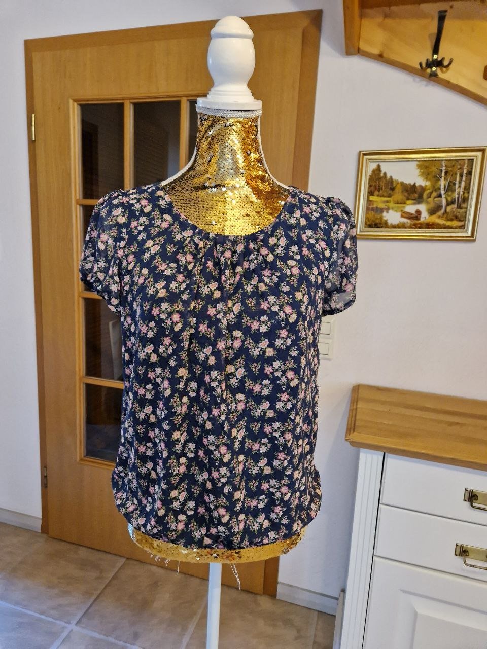 #Vintage Kurzarmbluse Bluse Gr. 38, Blumenmuster