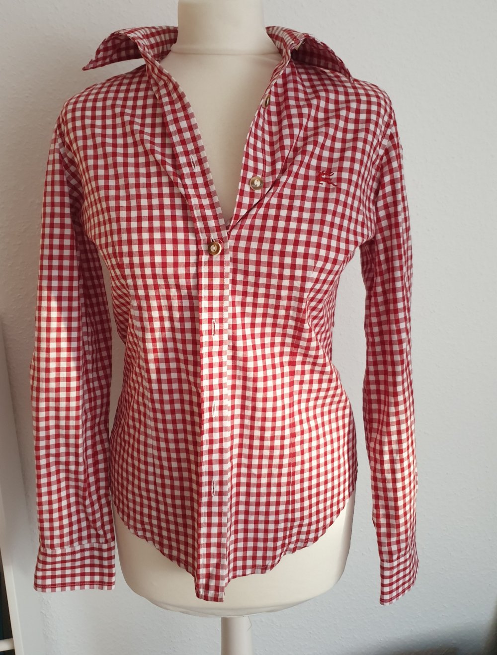 Trachtenbluse weiß rot kariert 34 XS S Oktoberfest