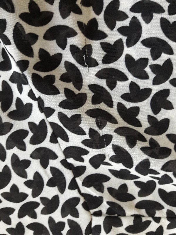 Chiffon Bluse mit weiß-schwarzem Muster von Ann Christine wurde paar mal getragen. Hinten am Rücken ein Faden gezogen, fällt aber nicht auf.