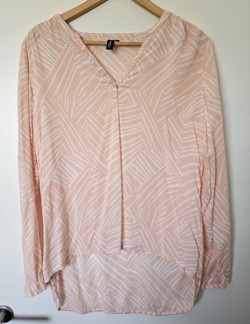 Leichte Damen Langarm Bluse Oberteil Gr. L (s.Oliver) rosa/weiss