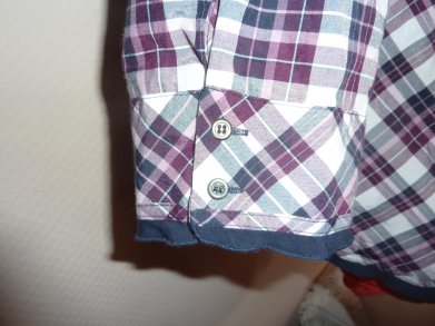 Bluse in 44, sehr dünner Stoff, an der Taille mit einem Band verstellbar. leider fehlt eine Kugel. sonst super Zustand.