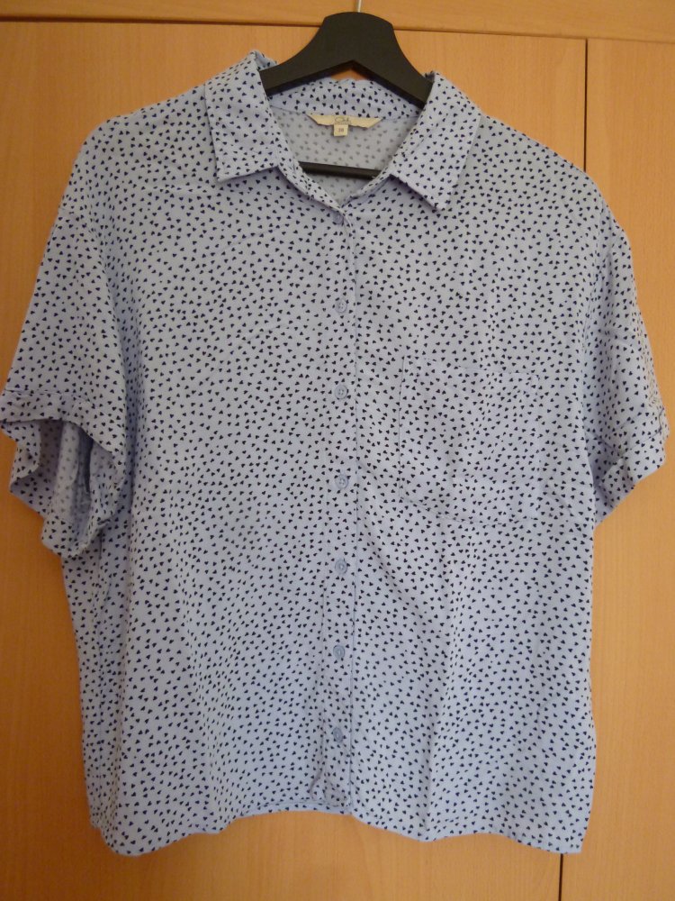 Kurze hellblaue Bluse mit schwarzen Herzen, Größe 38 Kurze hellblaue Bluse mit schwarzen Herzen, Größe 38 Kurze hellblaue Bluse mit schwarzen Herzen, Größe 38 Kurze hellblaue Bluse mit schwarzen Herzen, Größe 38
