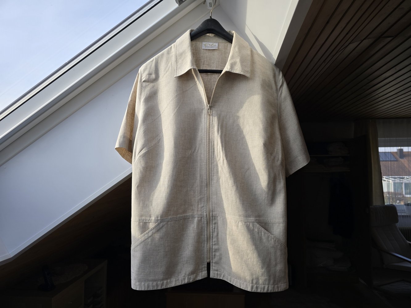 Bluse mit Reißverschluss und 2 Eingriffstaschen, auch gut mit einem Top darunter kombinierbar. Länge 72cm, Umfang auf Brusthöhe 120cm.