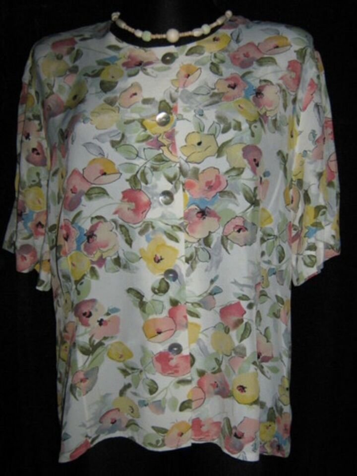 NEU * Edel * Romantik * Aquarell * Blumen * Blüten * Flower- Power * Kragenlose * DESIGNER * Halbarm * Bluse * Gr. 42- 44, 46/ M- L * Pastell *
