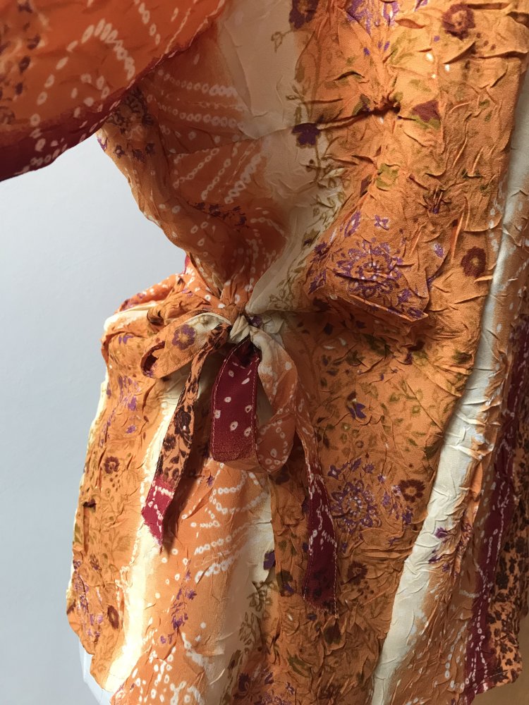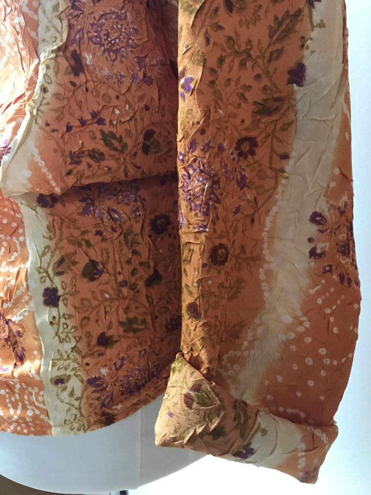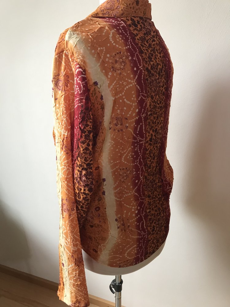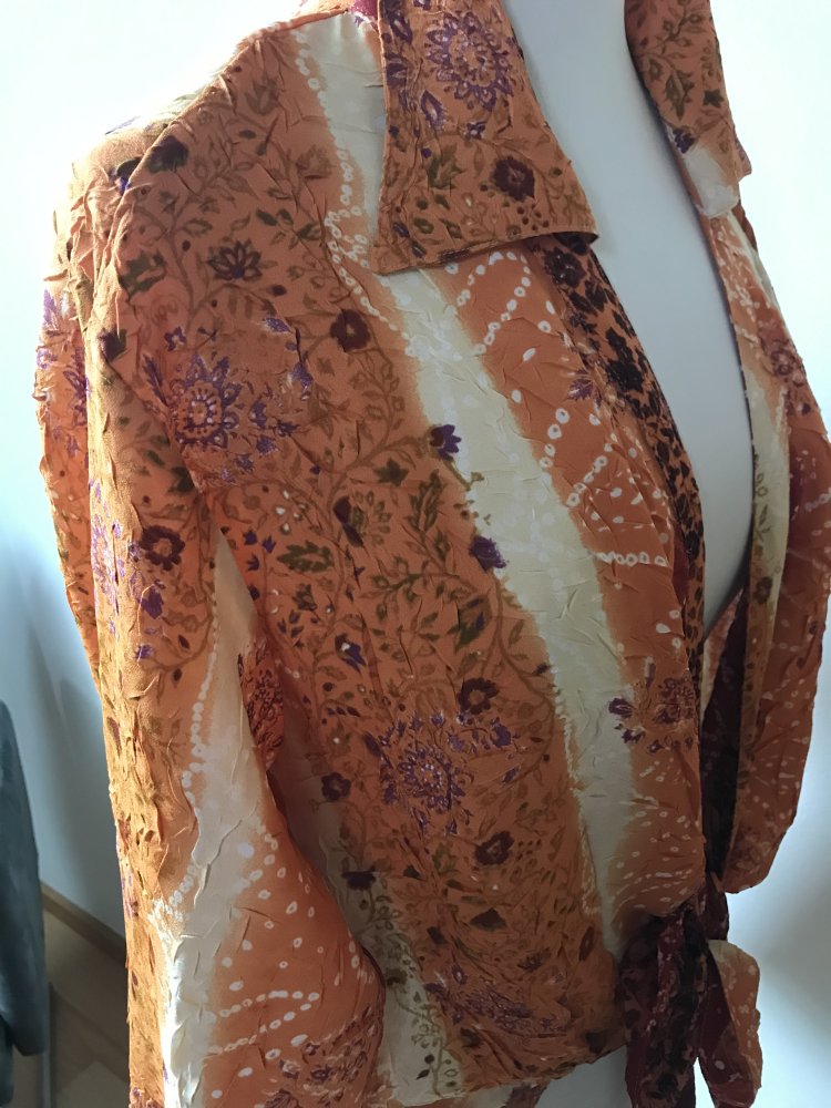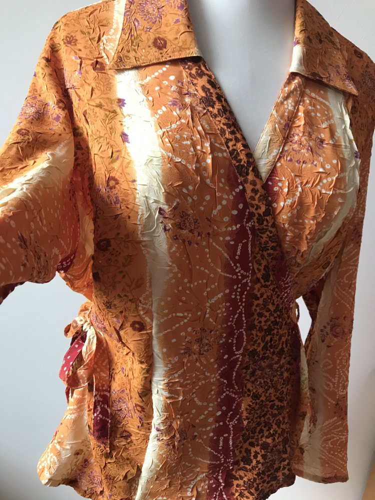 #bluse #hemdbluse #onesize #oversized #krinkle #orangebraun #knuepfbluse #knotenbluse #ethno #wickelbluse #tweans #46 #ibizastyle #yogi #wear #oberteil #wandelbar #kragenbluse #kentkragen #v_ausschnitt #offenes_oberteil #bindeguertel #alloverprint #ohne_knopfleiste #kimono #langarm