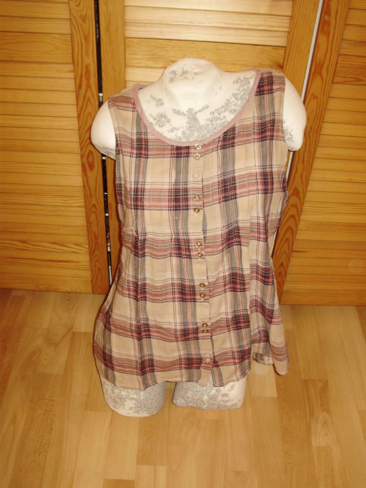 #Vintage Bluse ärmellos, lange Form, Gr. 36/38 bzw. ca. Gr. S/M, Batik, rot