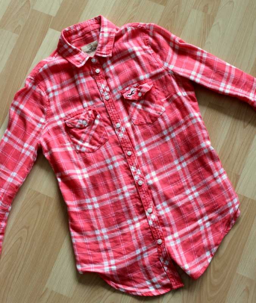 Ich biete eine sehr schöne Bluse von Hollister mit weiß rot/orangem (leichter rosa Stich, guckt einfach auf den Fotos Breites Grinsen) Karomuster Lächeln Sie besitzt zwei Taschen und kann mit Knöpfen verschlossen werden! Somit kann sie sowohl offen als auch geschlossen getragen werden und sieht in beiden Varianten sehr schön aus :-) Habe diese Bluse nur zwei mal getragen, von daher ist sie in einem top Zustand Lächeln Keine Tauschanfragen, Preis verhandelbar Lächeln