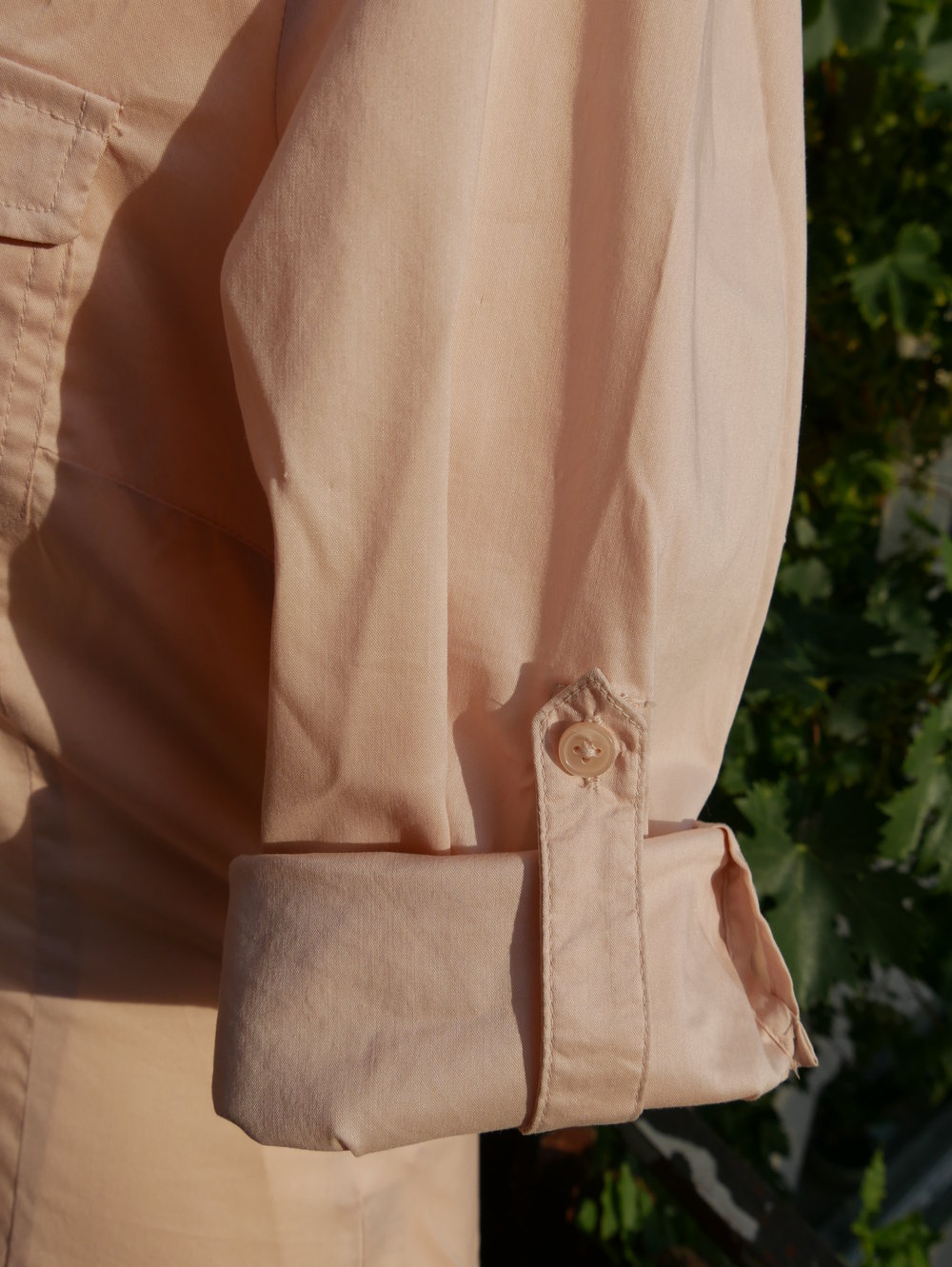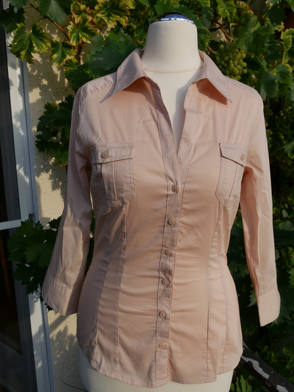 Bluse von H&M in Creme/Champagner-Ton. Neu. ¾-Ärmel, die zum kurzen Ärmeln zugeknöpft werden können. Vorne zwei Brusttaschen.