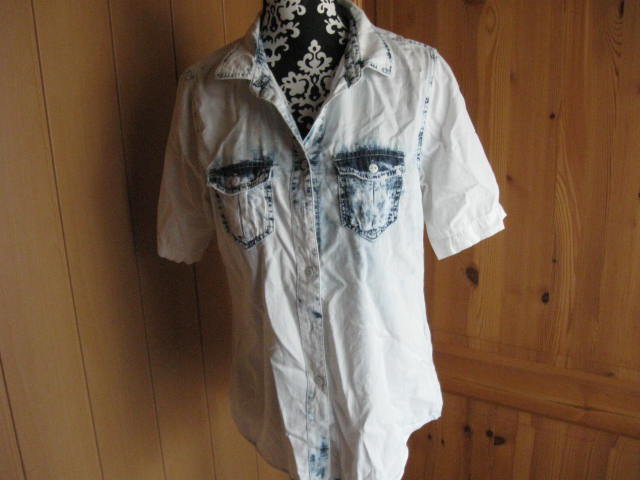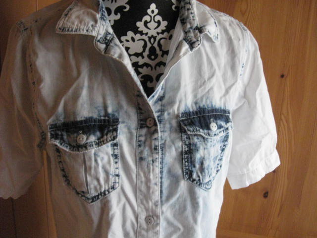 Biete diese Hemdbluse, die aus einem leichten Batik Jeansstoff besteht. Sie lässt sich auch als Jacke tragen. Im Brustbereich ist sie etwas kürzer gehalten. Nur mit dem bügeln habe ich nicht so viel am Hut. Hier einige Maßangaben:
