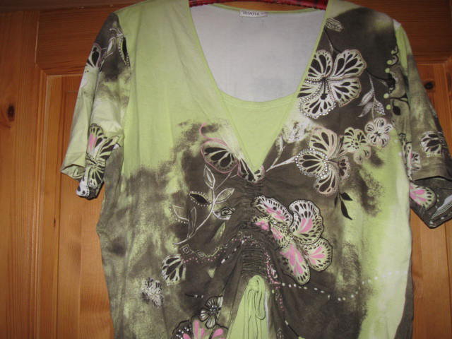 Ich miste aus, alles was zu groß oder zu klein ist, kommt on...Biete ein wenig getragenes Shirt, das im Brustbereich gerafft werden kann. Die Farben sind nicht verwaschen und dieses Teilchen, ist zu vielem kombinierbar. Hier noch einige Maßangaben: