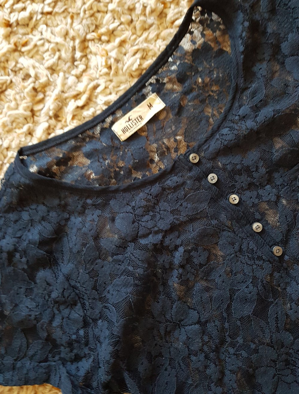 Hollister Spitzenshirt T-Shirt mit kleine Knopfleiste und Volants in dunkelblau Gr.M sehr guter Zustand, Versand 1.60€ Großbrief, Bezahlung per Überweisung