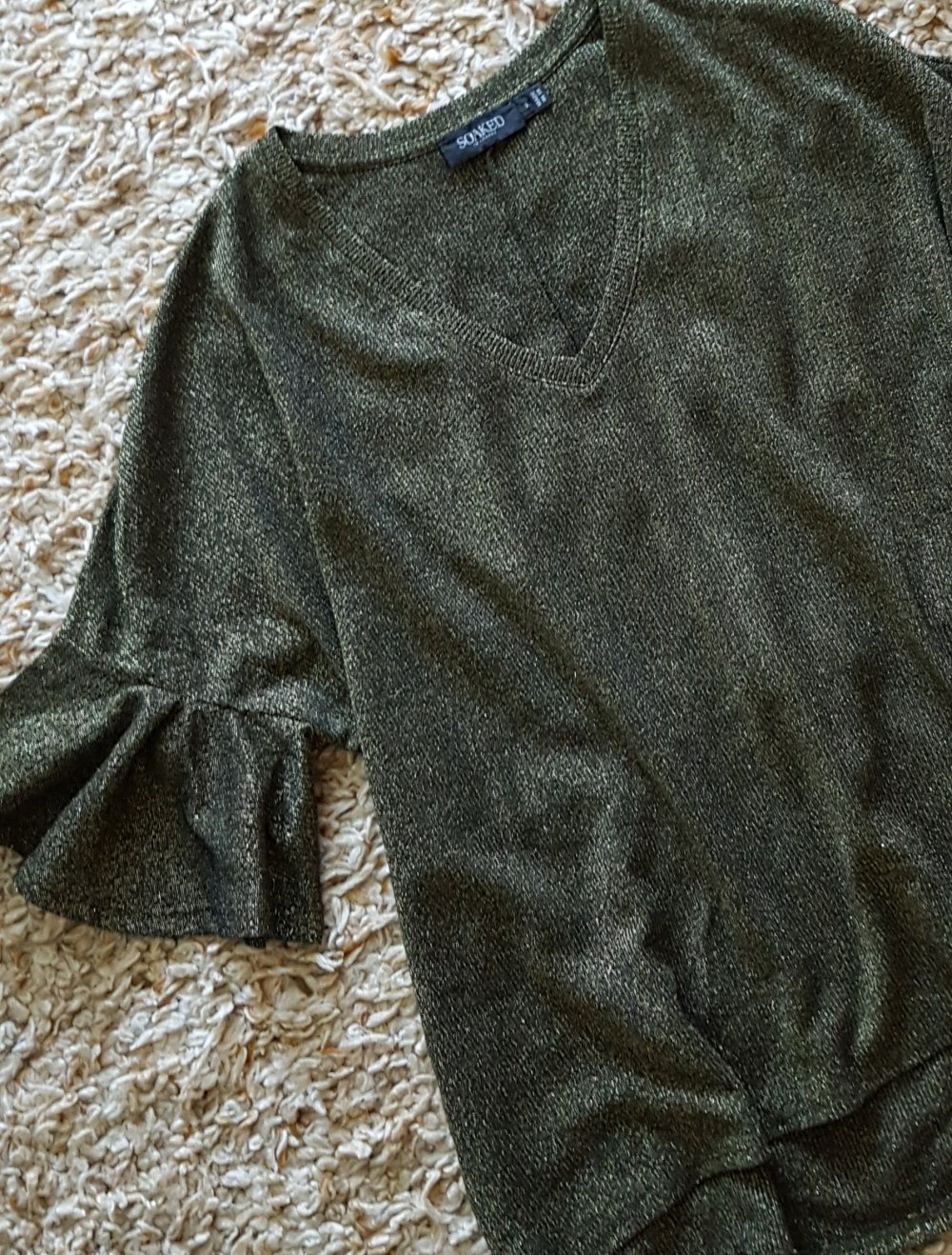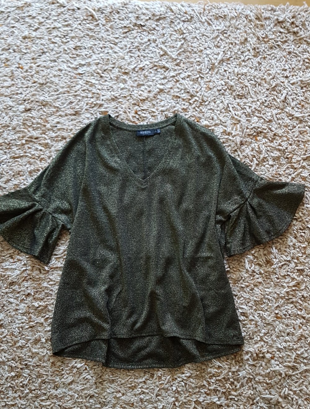 Feinstrickpullover mit V-Ausschnitt und Volants Ärmeln, Glitzer, gold schwarz Gr.S neu ungetragen Versand 2.90€ Maxibrief Bezahlung per Überweisung