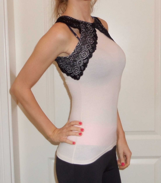 Toller Rundausschnitt oben. Hochgeschlossen, aber durch die schwarze Spitze doch sehr sexy und feminin.