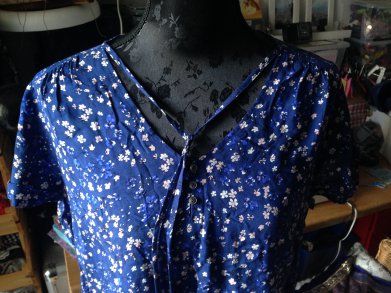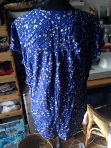 Sommer Shirt, maßgeschneidert, türkis mit Blumendruck, Vintage Retro Boho 70s Hippie Goa Festival Mori