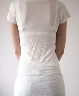 Vorne ist das Oberteil blickdicht, hinten durchscheinend.