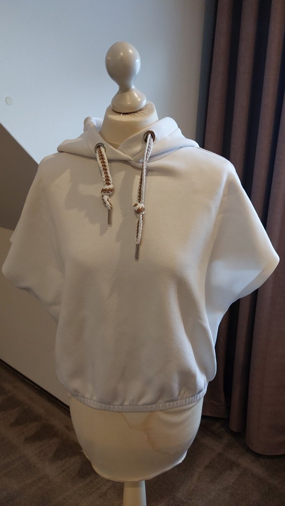 Super bequemer kurzärmliger Hoody. Schweres Material, sieht sportlich aus und sitzt super gut durch den Gummibund. Länge hinten gemessen = 52 cm
