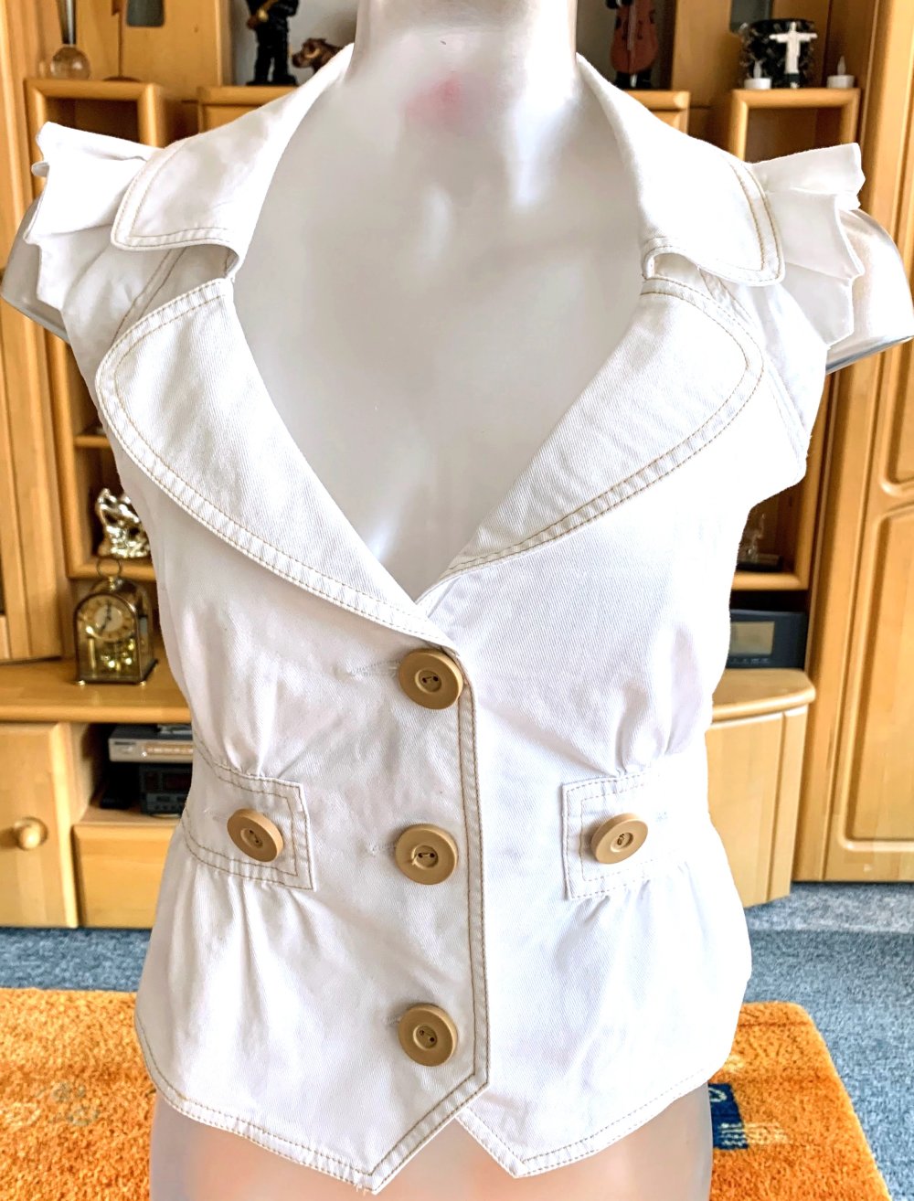 Damen Weste Jeans Sommer Look mit Rüschen Gr.36 Weiß Tally Weijl NW