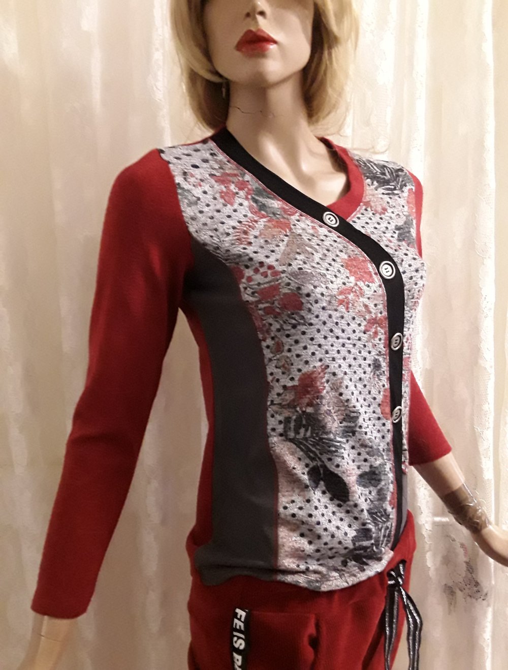 Ausgefallene Bluse mit Lippenstift-Motiven