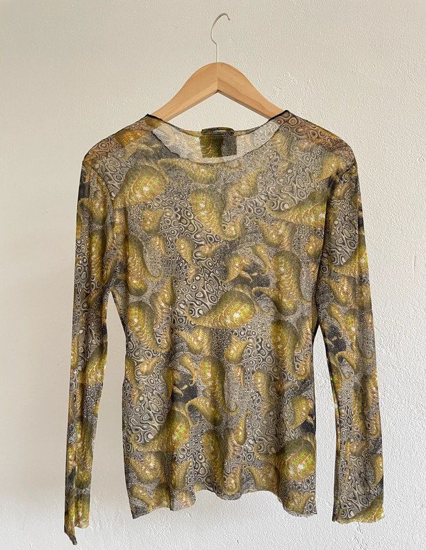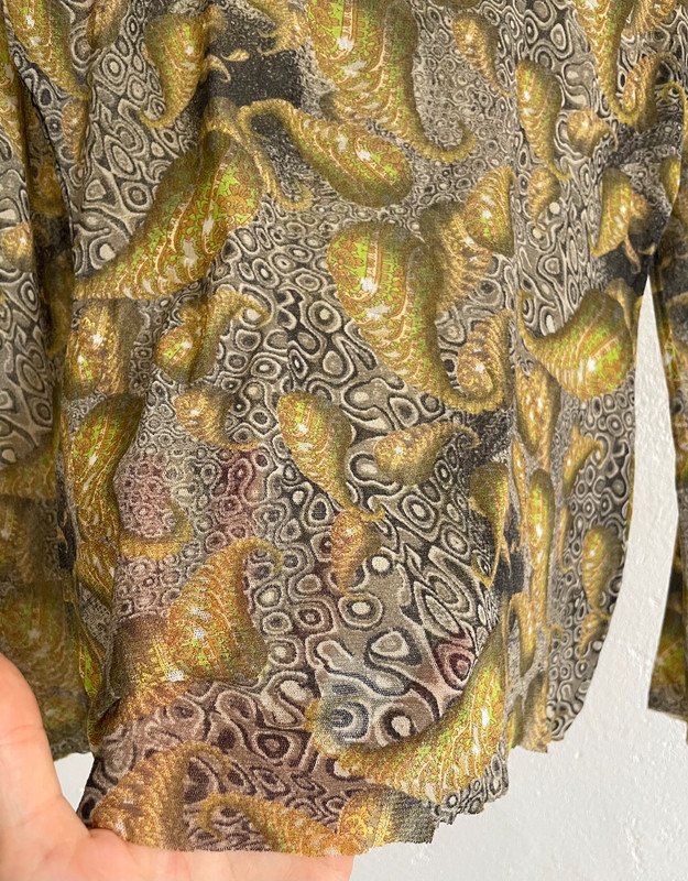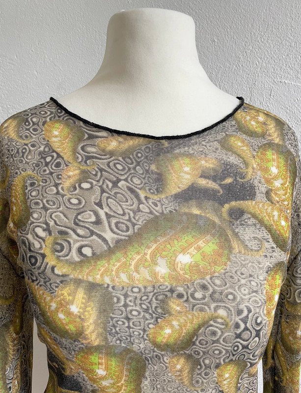Das Oberteil ist im sehr guten Vintage Zustand, ich habe es selten getragen. Fällt aus wie Gr. M Der Stoff ist durchsichtig und dehnbar, passt auch mit kleineren Größen.