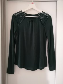 Jaqueline de Yong Pulli Gr. S dunkelgrün Saumende abgerundet