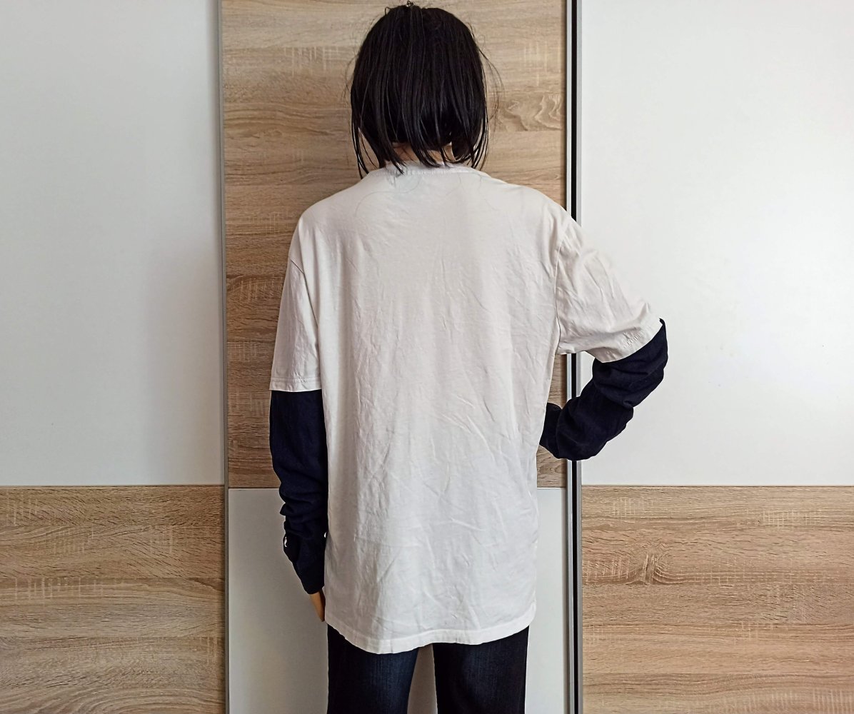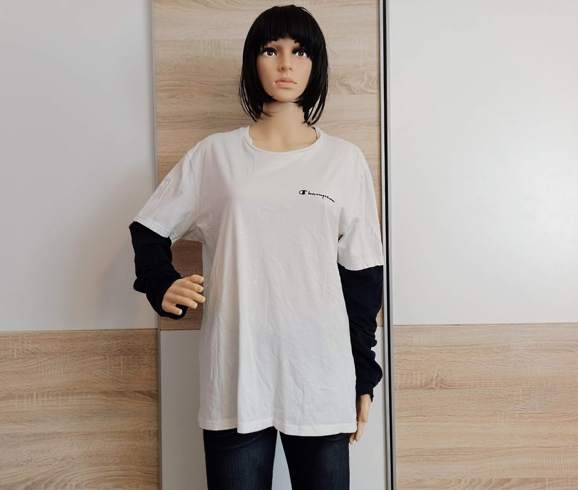 Schöner Langarm-Shirt in weiß mit marienblauen Ärmel von Champion in sehr gutem Zustand. Größe L. Das Langarm-Shirt ist sehr bequem und passt ganz gut zu verschiedenen Jeans oder Hose oder Röcke. Maße: Achsel zu Achsel 63 cm, Länge 76 cm. Material: 100% Cotton. Ich werde auch gern versenden für ein kleinen Aufpreis 1,95€ BÜWA unversicherter Versand, 5,49€ . Keine Rücknahme. Bei Fragen schreiben sie mir eine Nachricht. Ab 30€ Einkauf ist Versand kostenfrei!!!