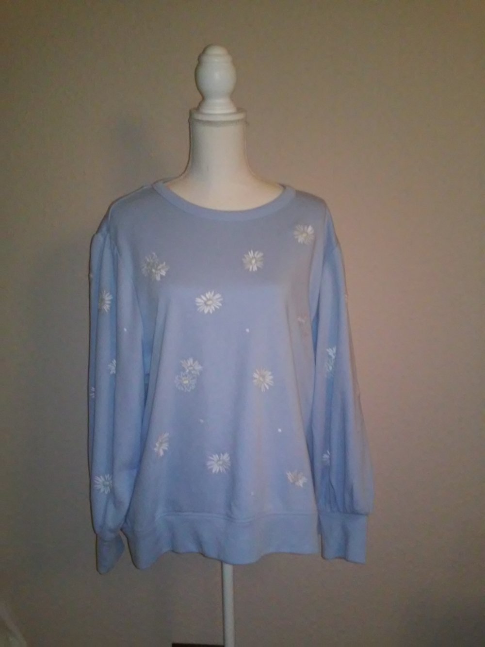 Neu! Pullover Sweatshirt Rundhals - hellblau/weißblüten -mit Etikett