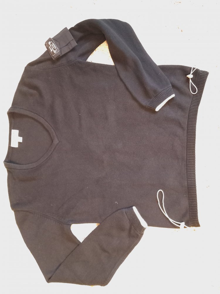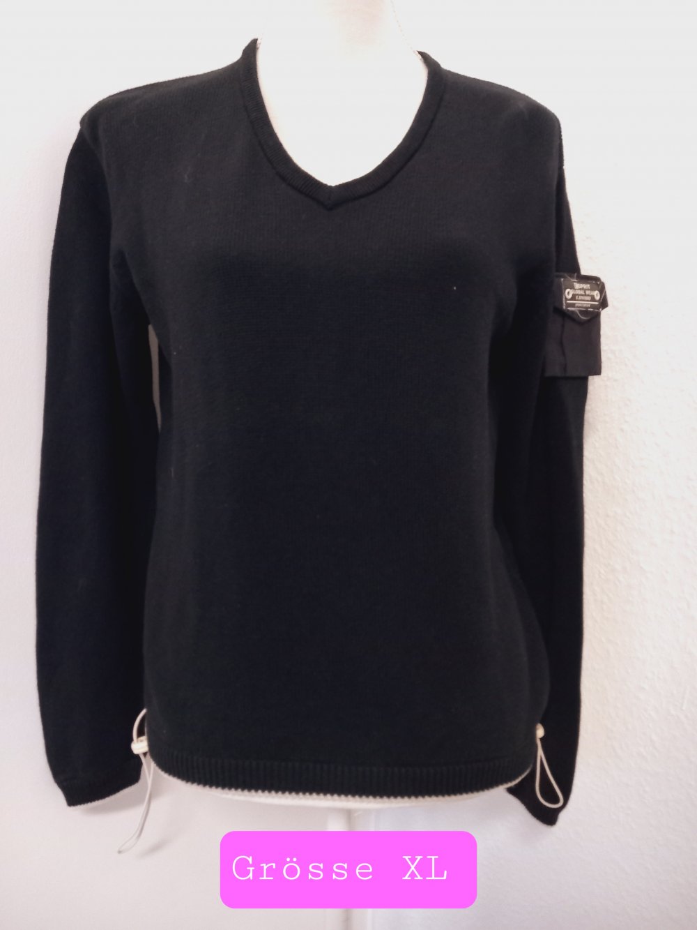 Esprit Strick Pullover schwarz Gr XL l mit V-Ausschnitt Tasche am Ärmel und Crop Bändchen
