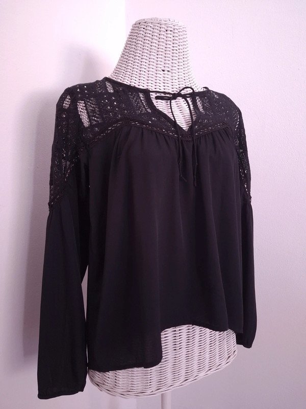Schwarzes Abercrombie & Fitch Blusenshirt | Gr. S | Häkelspitze | Langarm